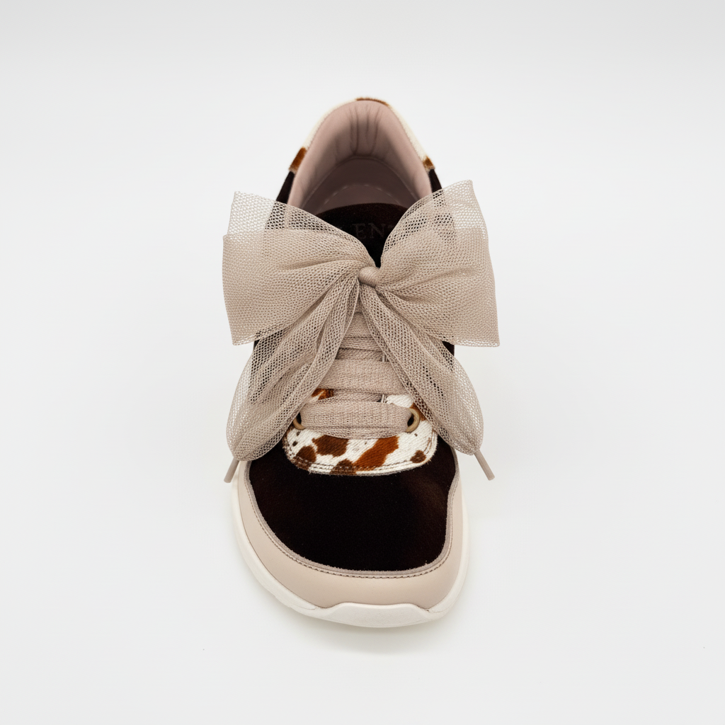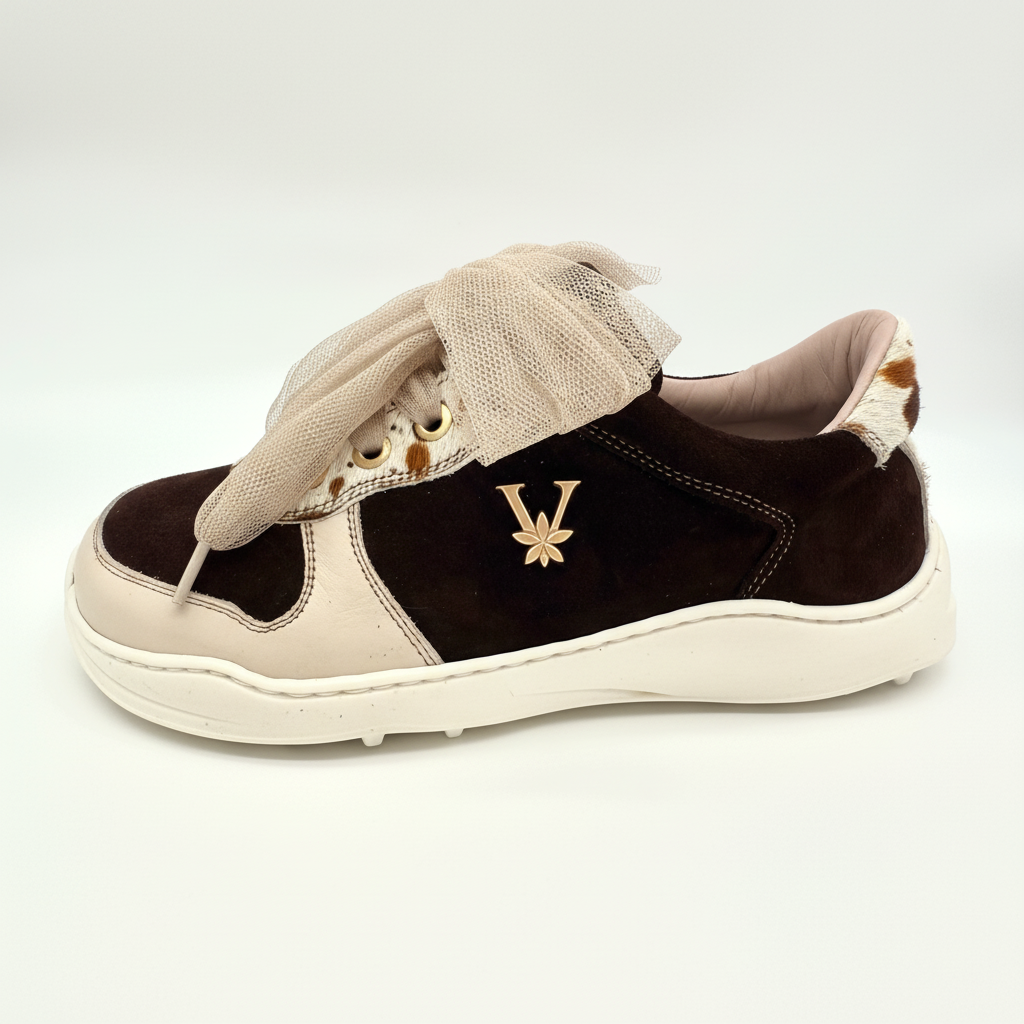 Hecho a mano en España🇪🇸, con piel natural de primera, pelo de vaca auténtico y una combinación chocolate + nata que es puro carácter.